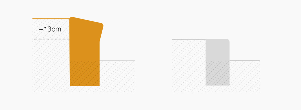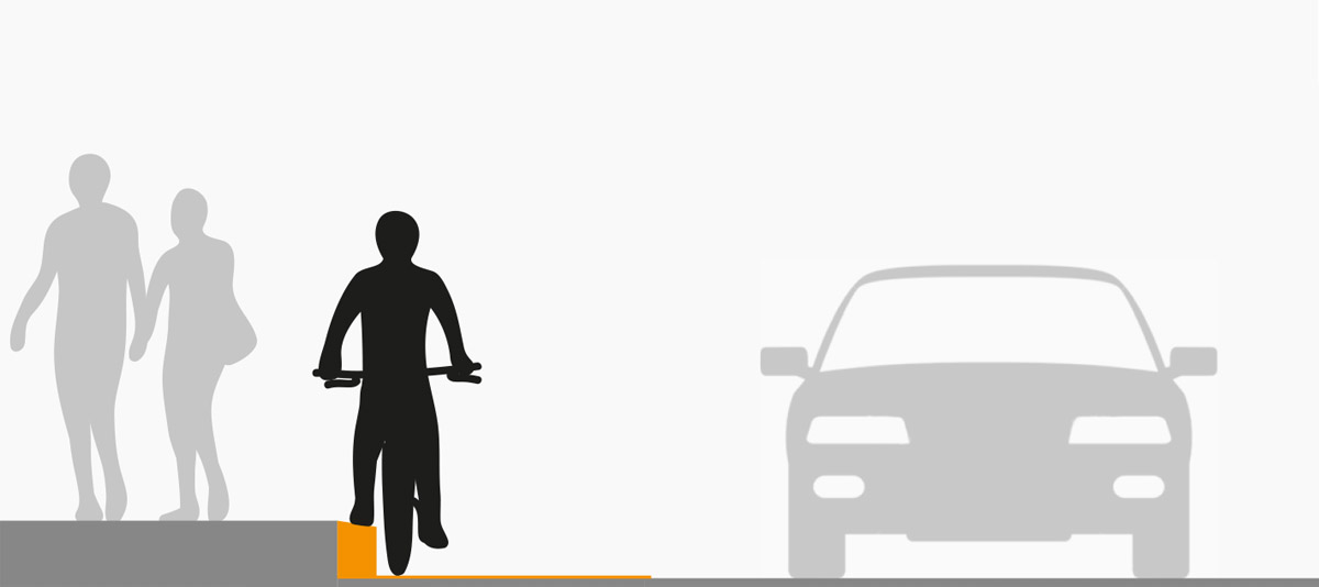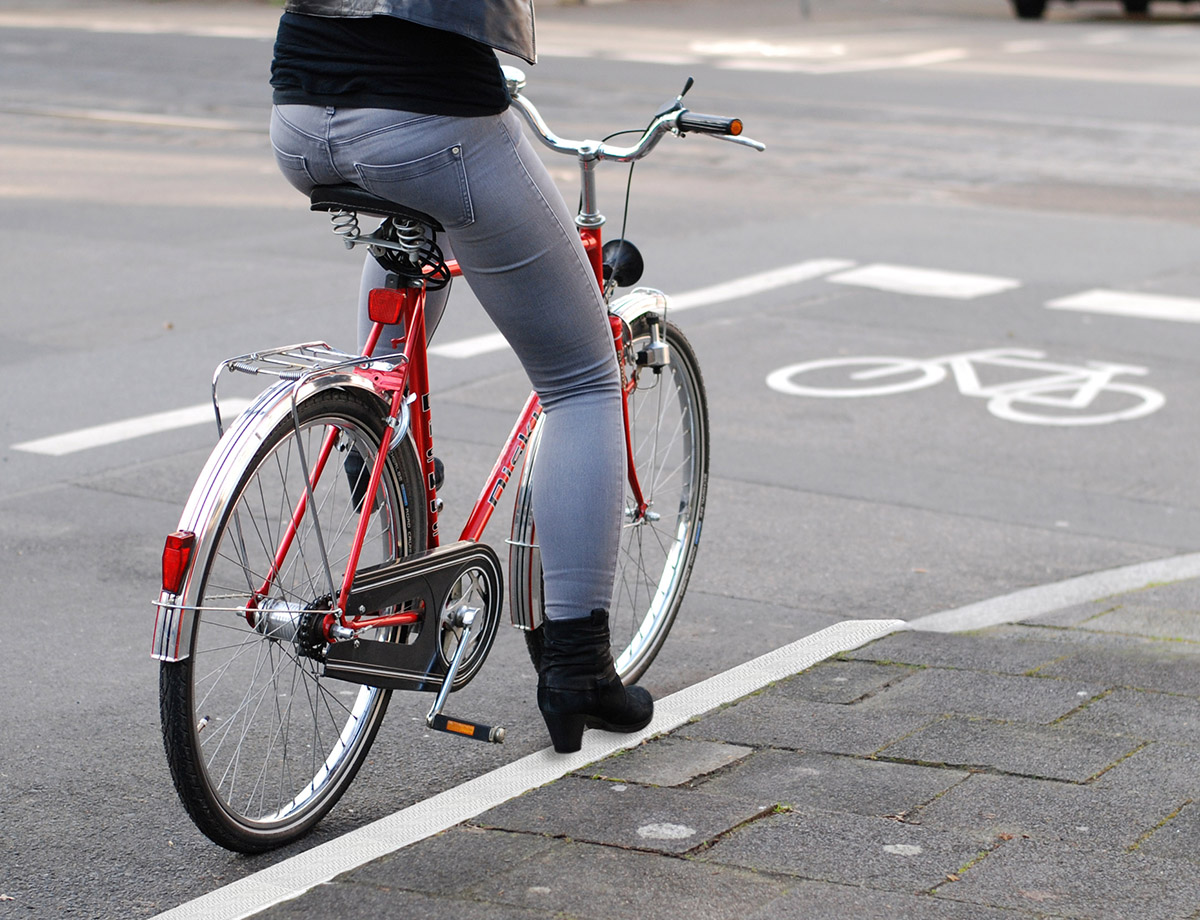 Dreizehn Zentimeter, die den Unterschied machen. Das Fahrradfahren in der Stadt kann bequemer werden, wenn wir nur an den richtigen Stellen ein bisschen dicker auftragen. Schon macht das Anhalten Spaß, ist das Anfahren viel leichter und der Radfahrer bekommt die Unterstützung, die ihm zusteht – an Kreuzungen, an Verkehrsinseln, an Orten mit schöner Aussicht. Mal schnell ein Foto machen, ans Telefon gehen oder sich in Ruhe orientieren. Flow erleichtert dies und kann auch Hinweise geben.